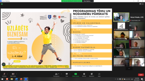 Interešu izglītības programmu “Es – uzņēmējs!” apmācību nodarbības tika ierakstītas video formātā, jo tuvākajā laikā tās tiks publicētas Latgales plānošanas reģiona mājas lapā, kopā ar linku, kurā būs iespējams lejuplādēt Rokasgrāmatu nodarbību vadītājiem ikviens interesents, kas vēlēsies izmantot vērtīgo mācību materiālu darbā ar bērniem un jauniešiem.