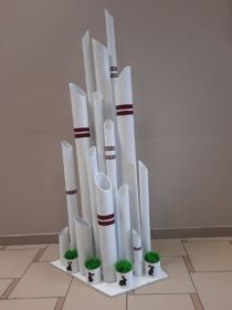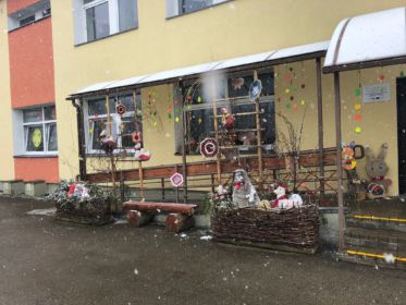 Lai acis priecētu un būtu svētku noskaņa, centra ieejas un centra telpas noformēšanā izmantojam dabas materiālus: