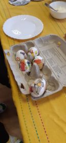 - Krāsotas olas, izmantojot dabas materiālus, kā sīpolu mizas, vilnas dzijas dzīpari, bērzu lapas, alkšņu pumpuri, kumelītes, u.t.t.