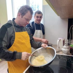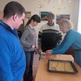 Atkal nāk gadskārtas svētki – Lieldienas. Dienas aprūpes centrā rit tematiskā rosība, darinot dažādus rotājumus un kompozīcijas. Specializētajās darbnīcās top olveidīgas un citas svētku sveces. Lieldienu noskaņojums tiek ieausts sedziņās, šallītēs un grīdceliņos aušanas darbnīcā. Kokapstrādes darbnīcā top koka detaļas Lieldienu kompozīcijām. Čakli strādājot, nevar iztikt arī bez kārumiem un tējas pēc labi padarīta darba, tādēļ klienti rosījās arī virtuvē – bija cepumu cepšana. Pēcpusdienā, baudot zāļu tēju ar pašu gatavotiem cepumiem grimām atmiņās par iepriekšējos gados svinētajām Lieldienām.