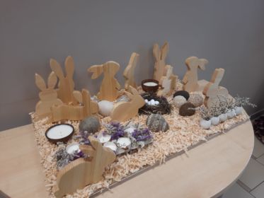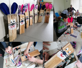 Dienas aprūpes centrā Benislavā ikdienas ritums ir piepildīts ar dažādām radošām aktivitātēm. Lieldienu gaidīšanas laiks arī ir īpašs arī šeit. Šogad centrā Lieldienu prieku ir atnesuši zaķi, kas tapuši no laukos tik ierastas lietas – malkas pagales! Centra klienti ir parūpējušies gan par telpu, gan par apkārtnes sakopšanu un svētku noskaņu.