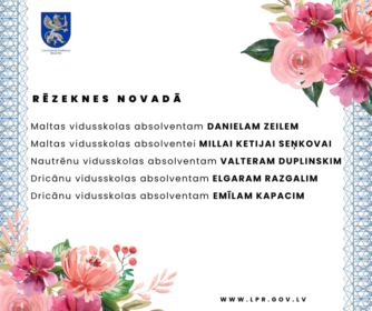 Latgales plānošanas reģiona Pateicības raksti “par labām un teicamām sekmēm mācībās un aktīvu dalību skolas un novada sabiedriskajā dzīvē” jauniešiem visās Latgales pašvaldībās tiks pasniegti: