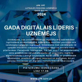 Uzņēmums, kas sniedz nozīmīgu ieguldījumu sabiedrības izglītošanā un motivēšanā, vienlaikus veicinot pozitīva tēla veidošanu Latgales reģionam. Uzņēmums tiek vērtēts pēc tā spējām inovatīvi izmantot digitālos rīkus un sociālo tīklu platformas (Facebook, Instagram, TikTok. u.c.), lai popularizētu savu produkciju vai pakalpojumu un stiprinātu reģiona atpazīstamību Latvijā un pasaulē, kā arī dalās ar praktiskām zināšanām, piedāvā vērtīgus resursus un padomus, kā arī veicina inovācijas un digitālo transformāciju savā nozarē.
