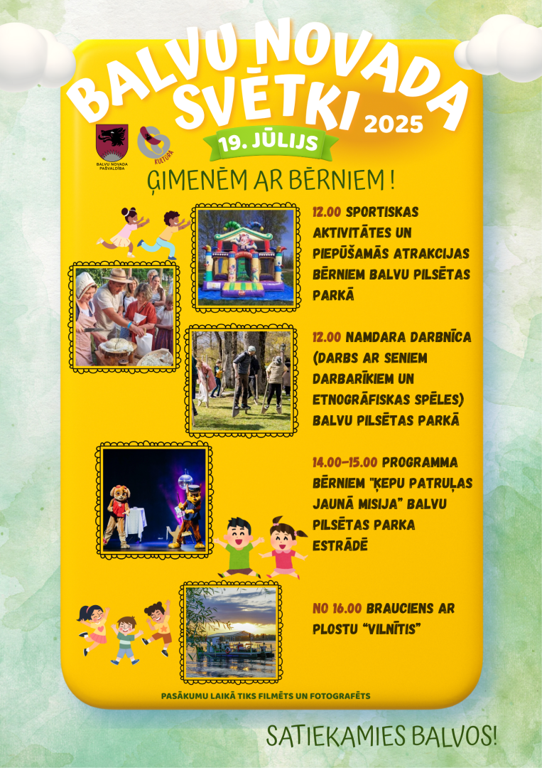 - Plkst. 14.00 Balvu pilsētas estrādē muzikāla izrāde visai ģimenei ‘’Ķepu patruļas jaunā misija’’.