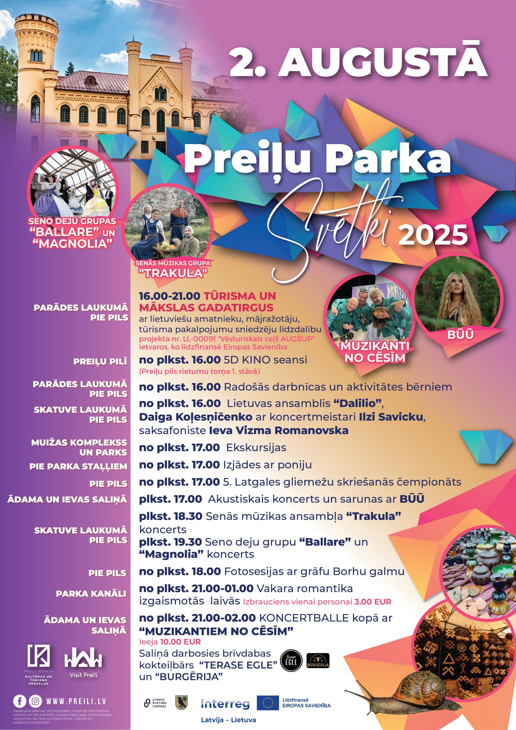 2025. gada 2. augustā Preiļos norisināsies ikgadējie Preiļu parka svētki, kas sola daudzveidīgu un aizraujošu programmu gan lieliem, gan maziem.