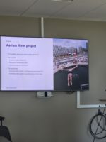 Orhūsas pašvaldības vecākais speciālists enerģijas un klimata jautājumos Søren Winther Lundby iepazīstināja vizītes dalībniekus ar pašvaldības pieeju klimatneitralitātes un enerģētikas jautājumiem. Viņš uzsvēra pilsētas mērķi sasniegt klimatneitralitāti līdz 2030. gadam, kas noteikts jau 2008. gadā, un iepazīstināja ar klimata rīcības plānu, kas ietver aptuveni 60 iniciatīvas emisiju mazināšanai visās galvenajās jomās.