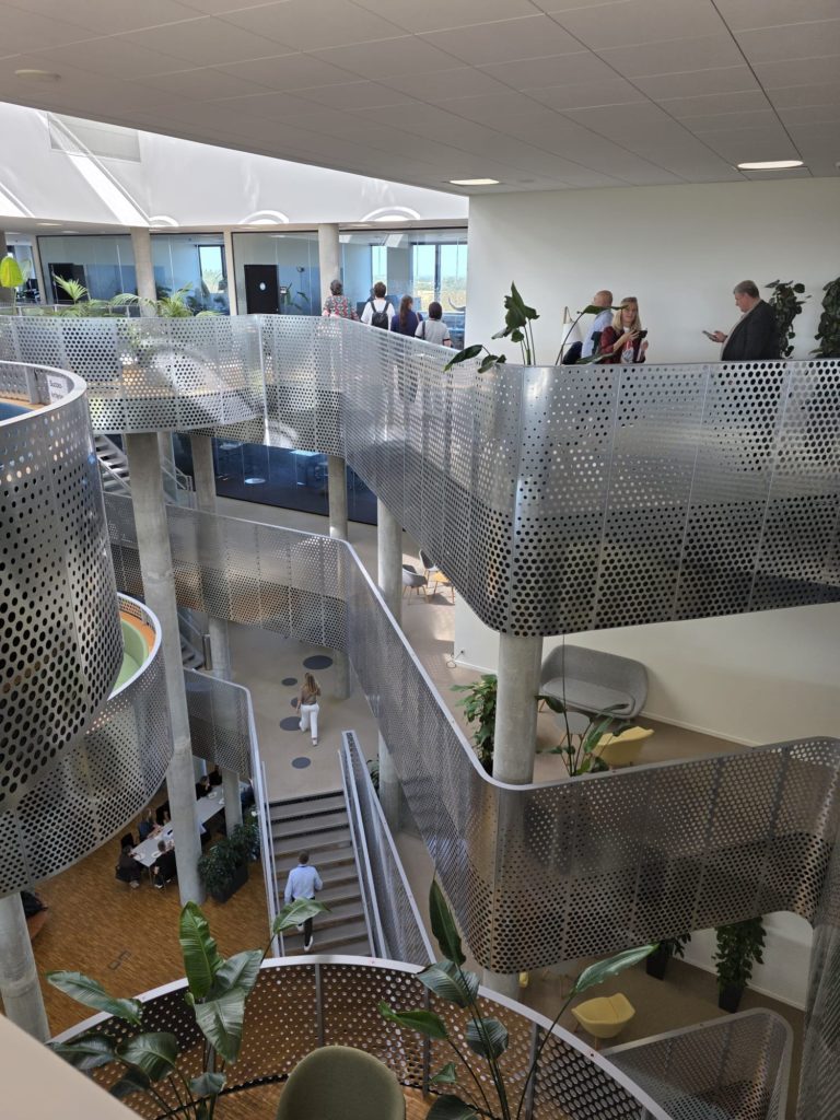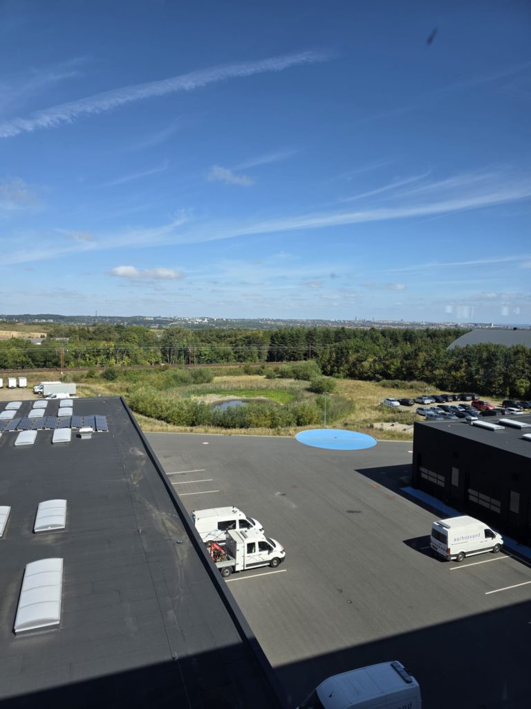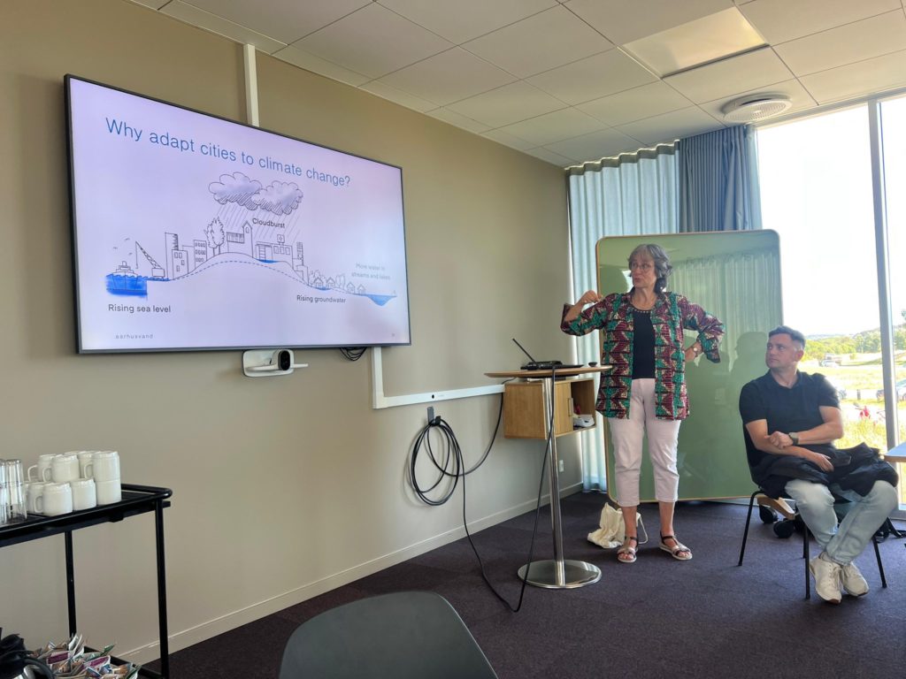 Aarhus Vand Stratēģiju un inovāciju koordinators Kristian Brunmark dalībniekus iepazīstināja ar ēkas arhitektūru un uzsvēra, ka ainavas dizains ap ēku integrē redzamu lietusūdens pārvaldību. Ap teritoriju ierīkoti rezervuāri, strauti un augu stādījumi, kas veicina bioloģisko daudzveidību. Dīķi ar dažādiem ūdens līmeņiem un vietējiem augiem nodrošina dzīves vidi putniem un kukaiņiem.