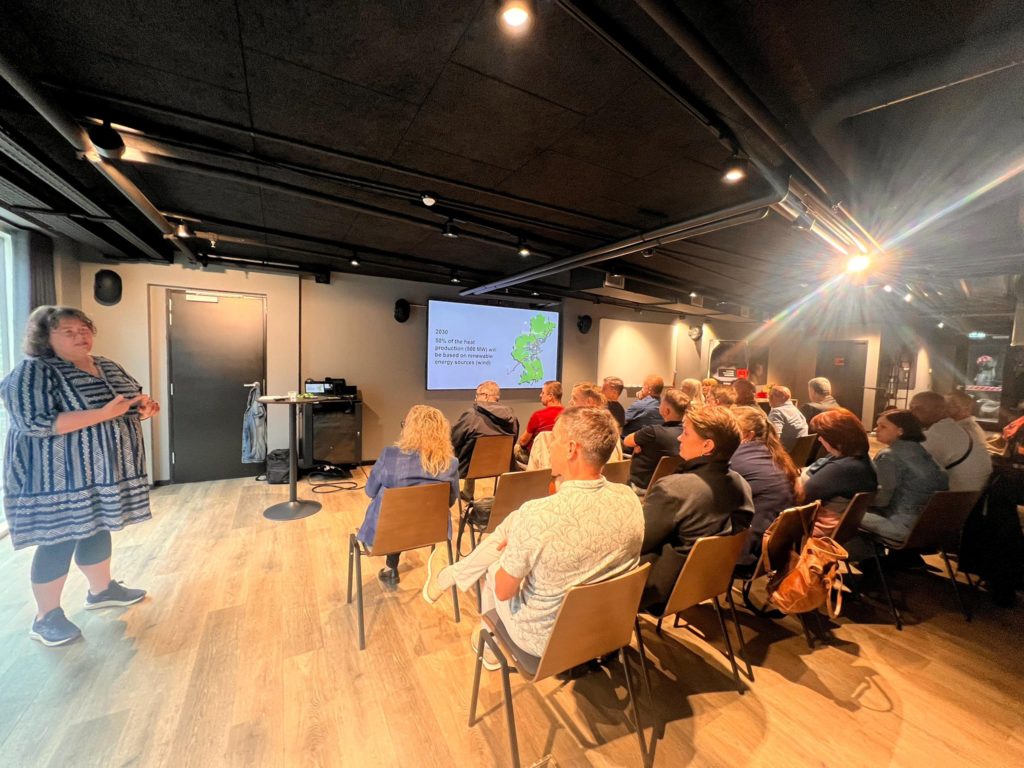 Orhūsas pašvaldības vecākais speciālists enerģijas un klimata jautājumos Søren Winther Lundby iepazīstināja vizītes dalībniekus ar pašvaldības pieeju klimatneitralitātes un enerģētikas jautājumiem. Viņš uzsvēra pilsētas mērķi sasniegt klimatneitralitāti līdz 2030. gadam, kas noteikts jau 2008. gadā, un iepazīstināja ar klimata rīcības plānu, kas ietver aptuveni 60 iniciatīvas emisiju mazināšanai visās galvenajās jomās.