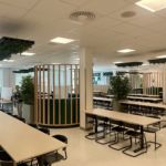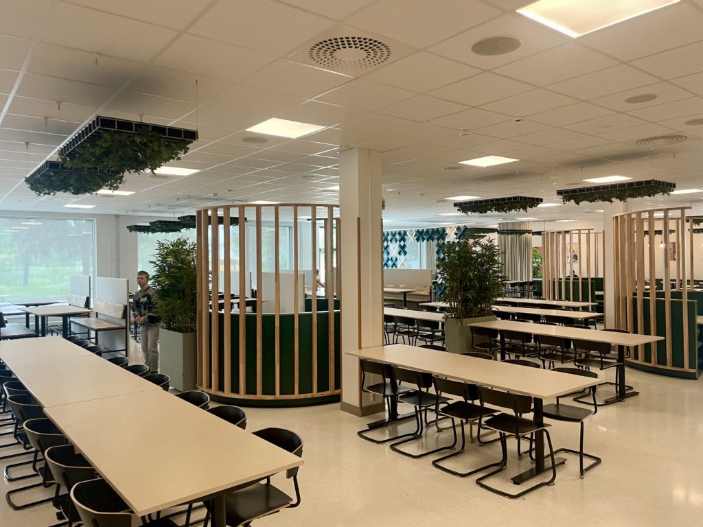Liela uzmanība tiek pievērsta arī skolu ēdnīcu iekārtojumam, lai radītu ērtu un patīkamu vidi ēdiena baudīšanai. Īpaši novērtētas ir “klusuma saliņas” — mazākas telpas, kur intraverti bērni un jaunieši var atpūsties un justies komfortabli bez liekas kņadas.