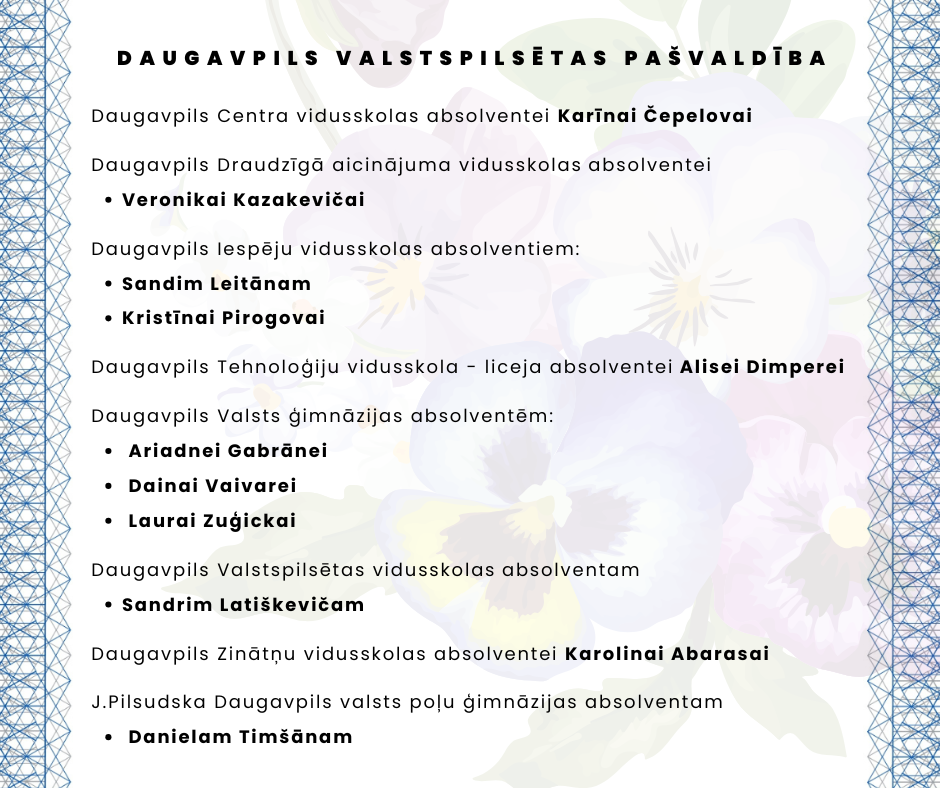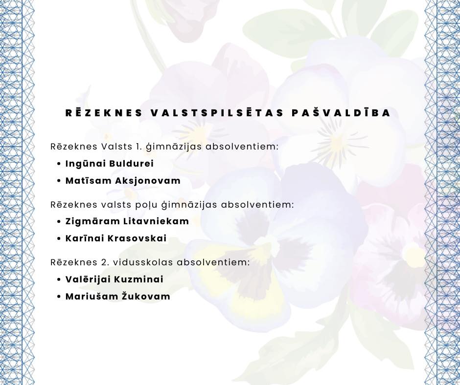 “Lepojamies ar šo jauno paaudzi, kura ar savu darbu, degsmi un vērtībām veido pozitīvas pārmaiņas Latgalē. Šie jaunieši ir apliecinājums tam, ka apvienojot zināšanas ar sabiedrisko atbildību, iespējams sasniegt augstus mērķus un iedvesmot citus. Viņi ir gan mūsu reģiona tagadne, gan nākotne. Vienlaikus jāuzsver, ka Latgalē arvien straujāk attīstās augsto tehnoloģiju un inovatīvi uzņēmumi, kuriem ir nepieciešami zinoši, motivēti un radoši cilvēki. Ceram, ka daļa no šiem absolventiem nākotnē kļūs ne tikai par vērtīgiem speciālistiem vietējos uzņēmumos, bet arī par jauniem uzņēmējiem, kuri izvēlēsies veidot un attīstīt savu biznesu tieši Latgalē, tādējādi stiprinot reģiona ekonomiku un kopējo potenciālu,” saka Latgales plānošanas reģiona administrācijas vadītāja un Latgales speciālās ekonomiskās zonas pārvaldniece Iveta Maļina-Tabūne.