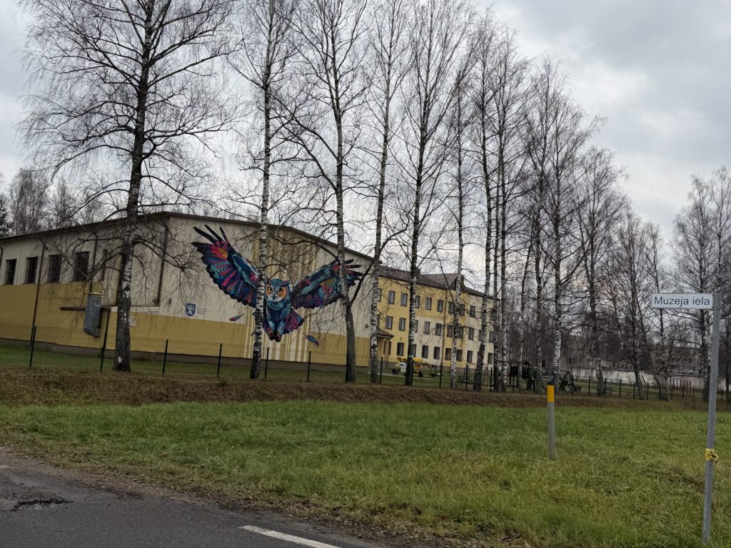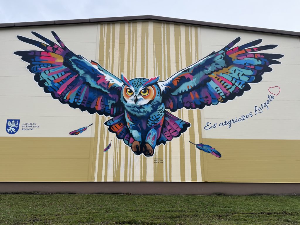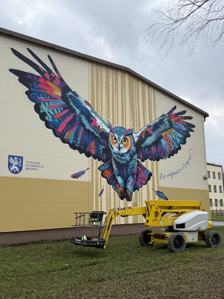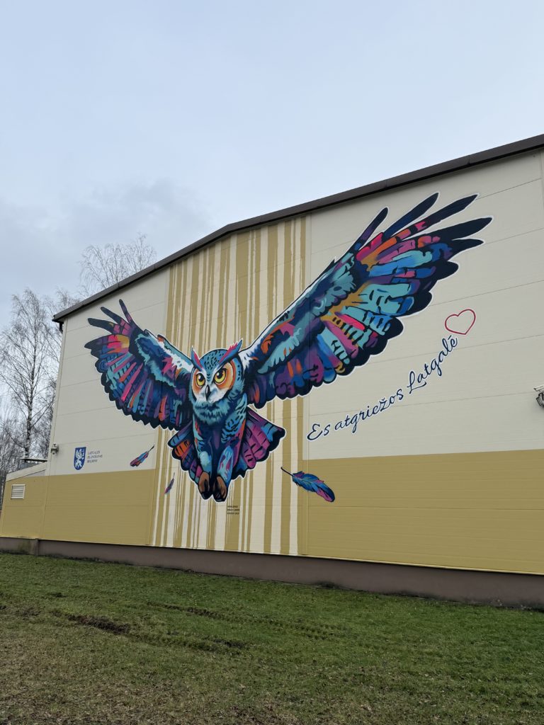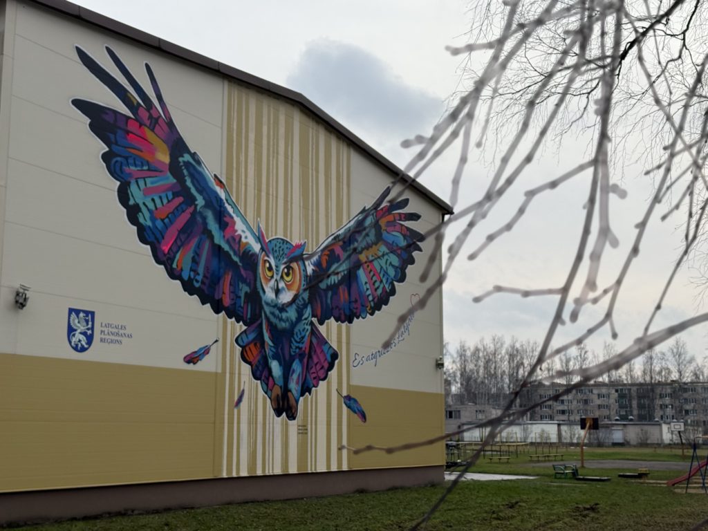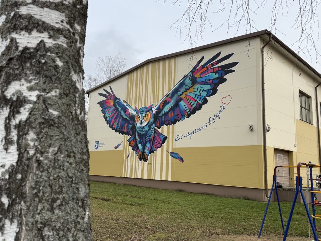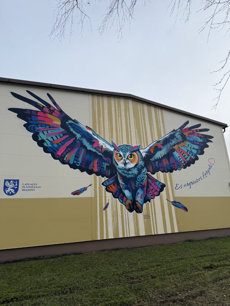 Murāli izstrādājis un uzgleznojis street art mākslinieki Edgars Losinskis un Edgars Ļuļs (biedrība “TempART”) grafiti tehnikā. Krāsainā, plašu spārnu pūce rotā ēkas fasādi, kas vērsta pret A13 šoseju Daugavpils–Rēzekne, padarot to par pamanāmu un iedvesmojošu orientieri gan skolēniem, gan garāmbraucējiem. Latgales plānošanas reģions izsaka sirsnīgu pateicību māksliniekiem par radošumu, spilgtajām krāsām un idejas iedzīvināšanu šajā īpašajā vietā.