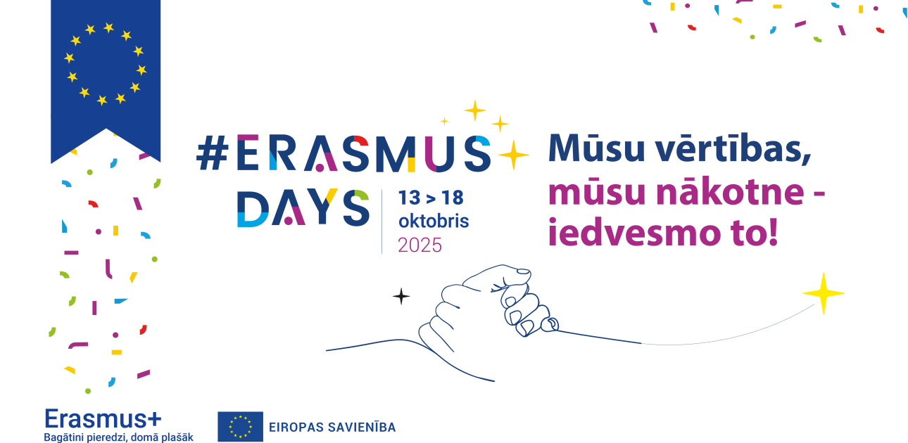 Latvijas Erasmus+ projektu īstenotāji šonedēļ, no 13. līdz 18. oktobrim, piedalās Eiropas mēroga iniciatīvā #ErasmusDienas, organizējot daudzveidīgus pasākumus, lai dalītos ar rezultātiem un ieguvumiem no starptautiskās mācību mobilitātes un sadarbības projektiem. Šogad Latvijā notiek vairāk nekā 60 dažāda formāta pasākumi – gan iekšēji notikumi izglītības iestādēs un organizācijās, gan publiski pieejamas aktivitātes, kurās aicināts piedalīties ikviens interesents.