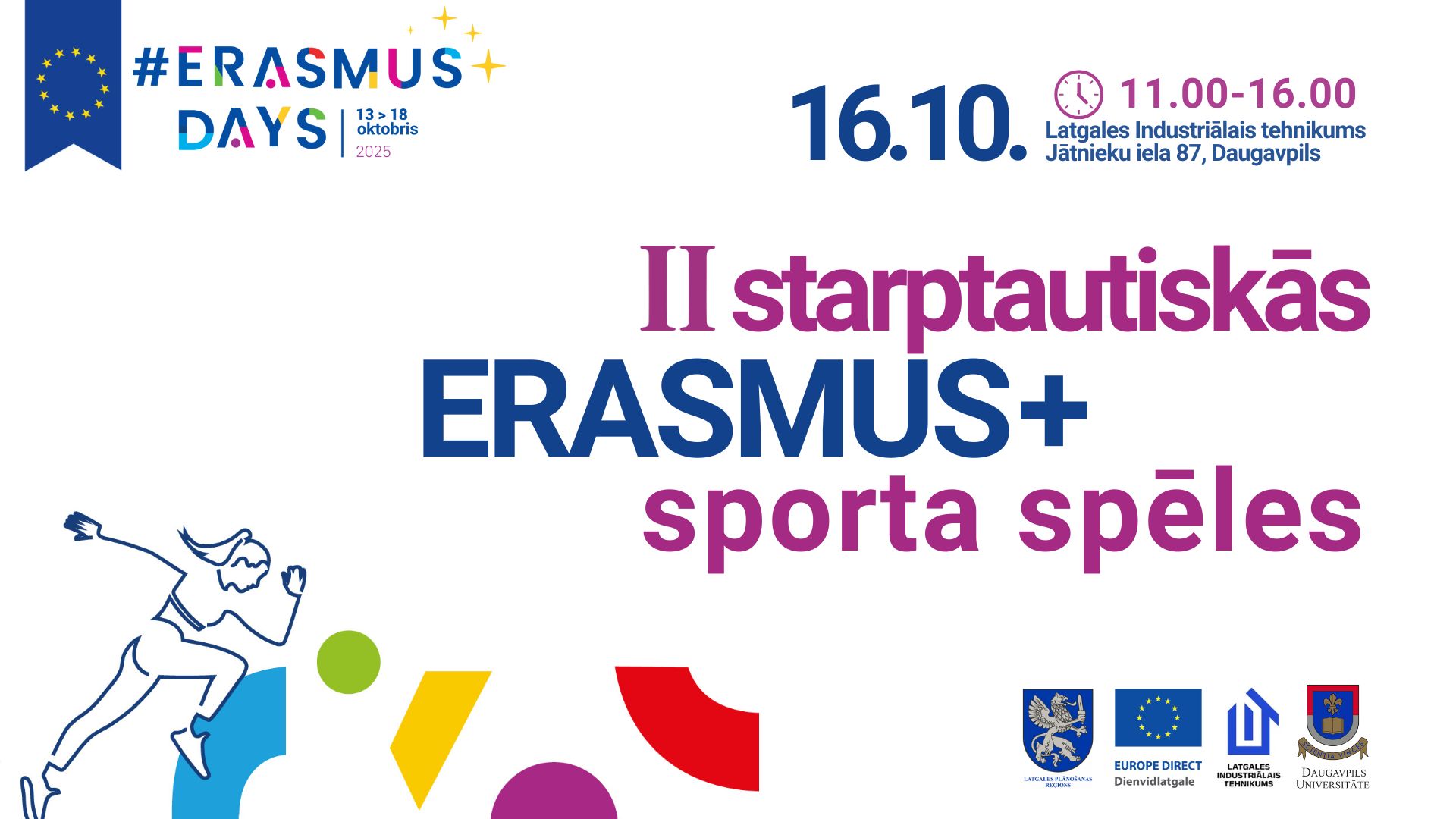 Savukārt #ErasmusDienās Daugavpilī, Latgales industriālajā tehnikumā, jau otro gadu pēc kārtas notiks starptautiskās Erasmus+ sporta spēles, ko organizē Latgales plānošanas reģiona Europe Direct Dienvidlatgale centrs. Paredzēts, ka spēles pulsēs dalībniekus no Latvijas, Lietuvas un Igaunijas, stiprinot sadarbību un saliedētību starp dažādu valstu izglītības iestādēm.
