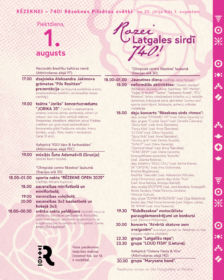 Piektdiena, 1. augusts, būs veltīta teātrim, sportam un jaunatnei. Teātris “Joriks” plkst. 19.00 ielūdz uz koncertuzvedumu “Jorika 35” (biļešu cena 10 eiro). Tāpat plkst. 19.00 Rēzeknes olimpiskā centra laukumā sāksies grandioza Jaunatnes diena ar neformālām aktivitātēm “Saredzi iespējas” un radošajām darbnīcām. Par mūsu talantīgajiem jauniešiem varēs priecāties deju koncertā “Rēzeknes sirds ritmos” un koncertā “Atvērtā skatuve zem zvaigznēm”. Jauniešiem noteikti patiks “RideRezekne” motociklistu paraugdemonstrējumi, kā arī grupu “Latgalīšu reps” un “Loud Fish” (Lietuva) uzstāšanās. No plkst. 18.00 līdz 01.00 notiks arī tradicionālā sporta nakts “Rēzekne Open 2025” (sacensības minifutbolā un miniflorbolā, volejbolā, 3×3 basketbolā un hokejā 3×3, piesakies).