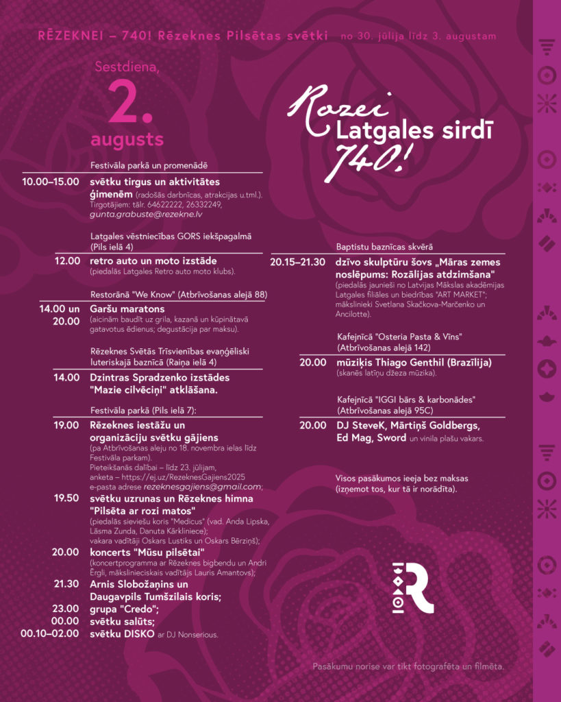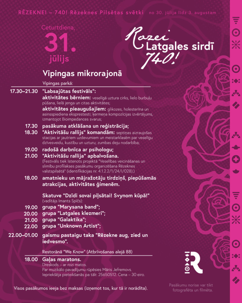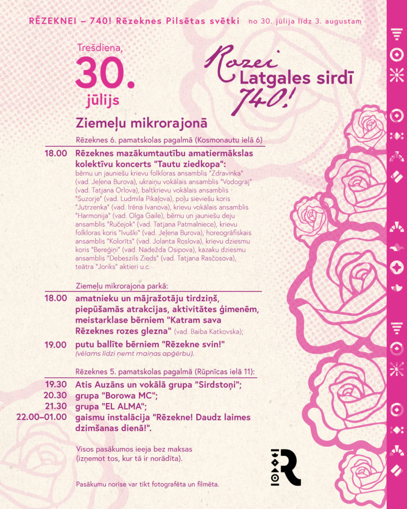 Rozei Latgales sirdī – 740! Svinēsim Rēzeknes pilsētas svētkus piecu dienu garumā!
