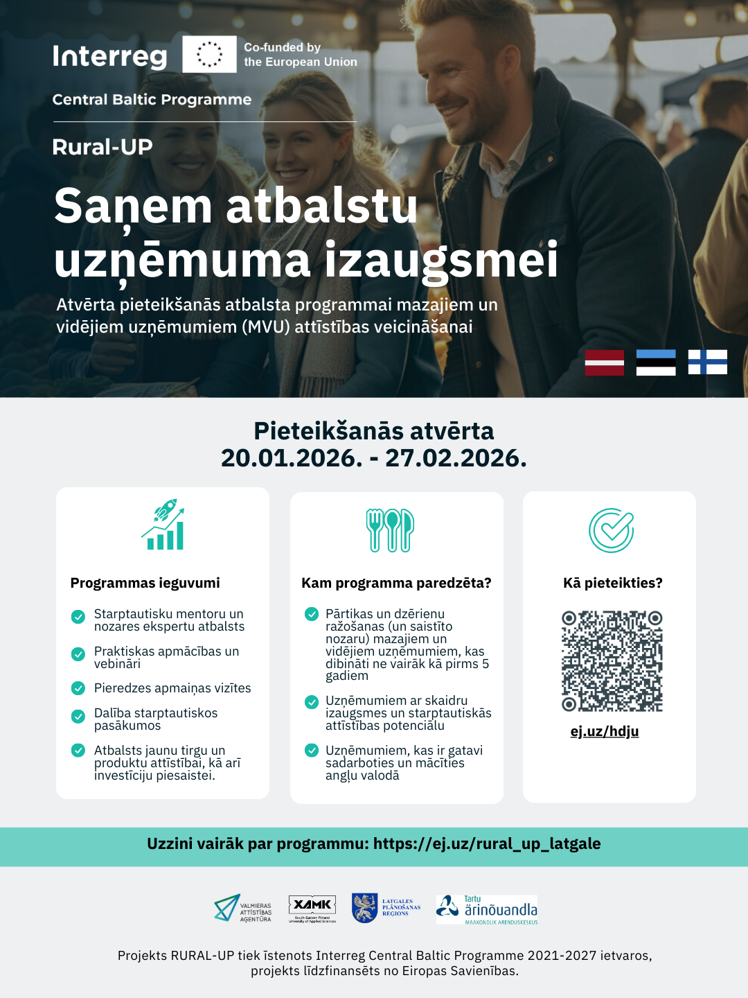 Projekts Rural-UP tiek īstenots Interreg Centrālās Baltijas jūras reģiona pārrobežu sadarbības programmas 2021.–2027. gadam ietvaros, un to līdzfinansē Eiropas Savienība.