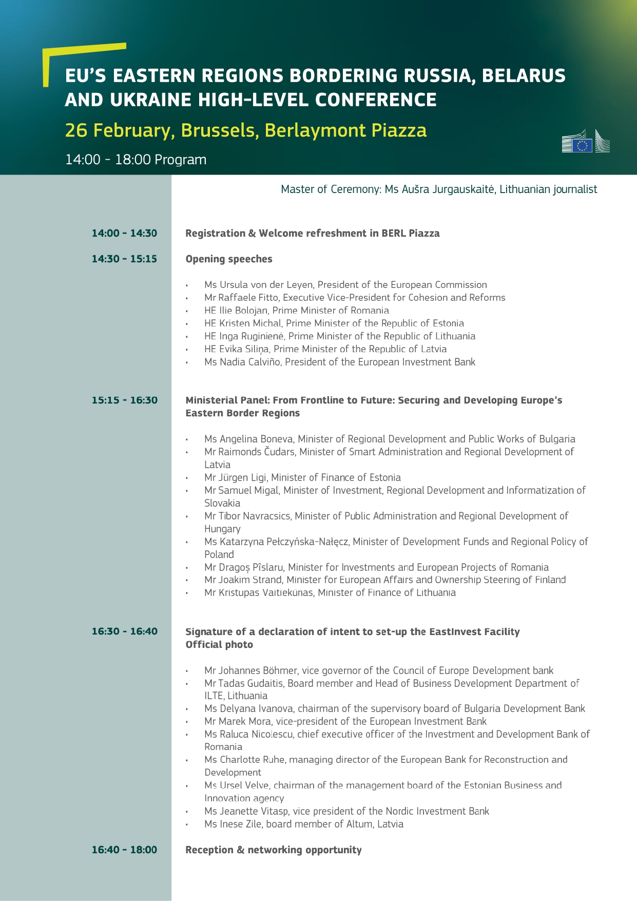 Briselē 26.02.2026. notiek augsta līmeņa konference par ES Austrumu pierobežas reģionu attīstību – aicinām sekot līdzi tiešraidē