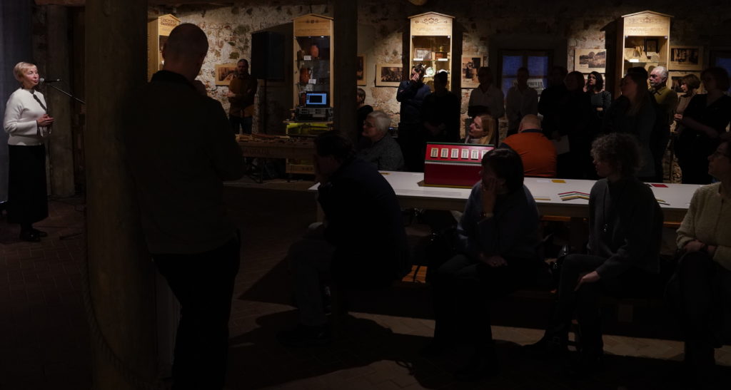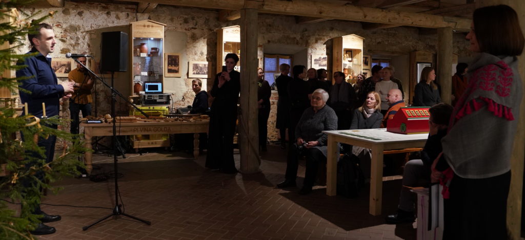 Atklāšanas svētkus moderēja projekta “Digitālais tūrisms amatniecībā” vadītāja Sarmīte Teivāne. Klātesošos uzrunāja un sveica Krāslavas novada pašvaldības domes izpilddirektora vietniece finanšu jautājumos Inese Vorslova, Krāslavas novada muzeja direktores p.i. Alla Lomanovska, ekspozīcijas veidotājs Didzis Jaunzems un Latvijas-Lietuvas programmas vecākā eksperte Līga Upeniece. Īpašu noskaņu veidoja mūzikas instrumentu meistars , mūziķis Aleksandrs Maijers.