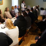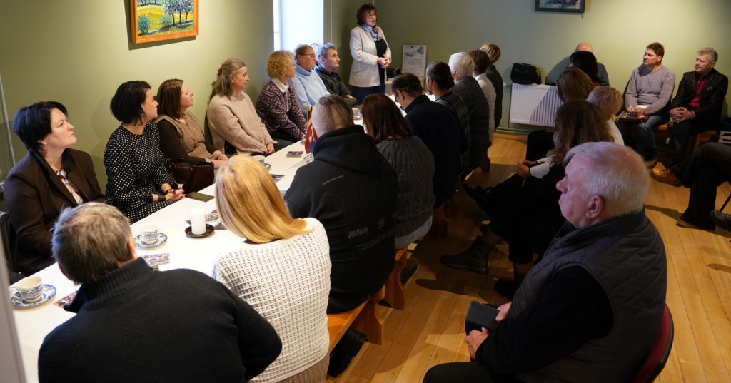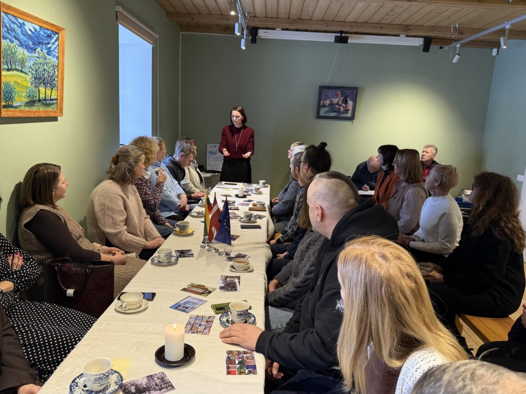 Daudz interesentu pulcējās uz sarunu ar arhitekti Ģertrūdi Rasnaču par viensētu koka arhitektūras savdabību Dienvidlatgalē.