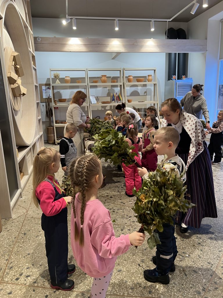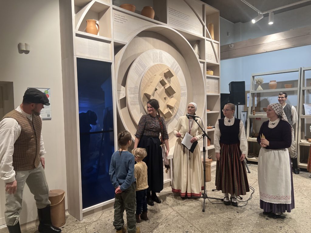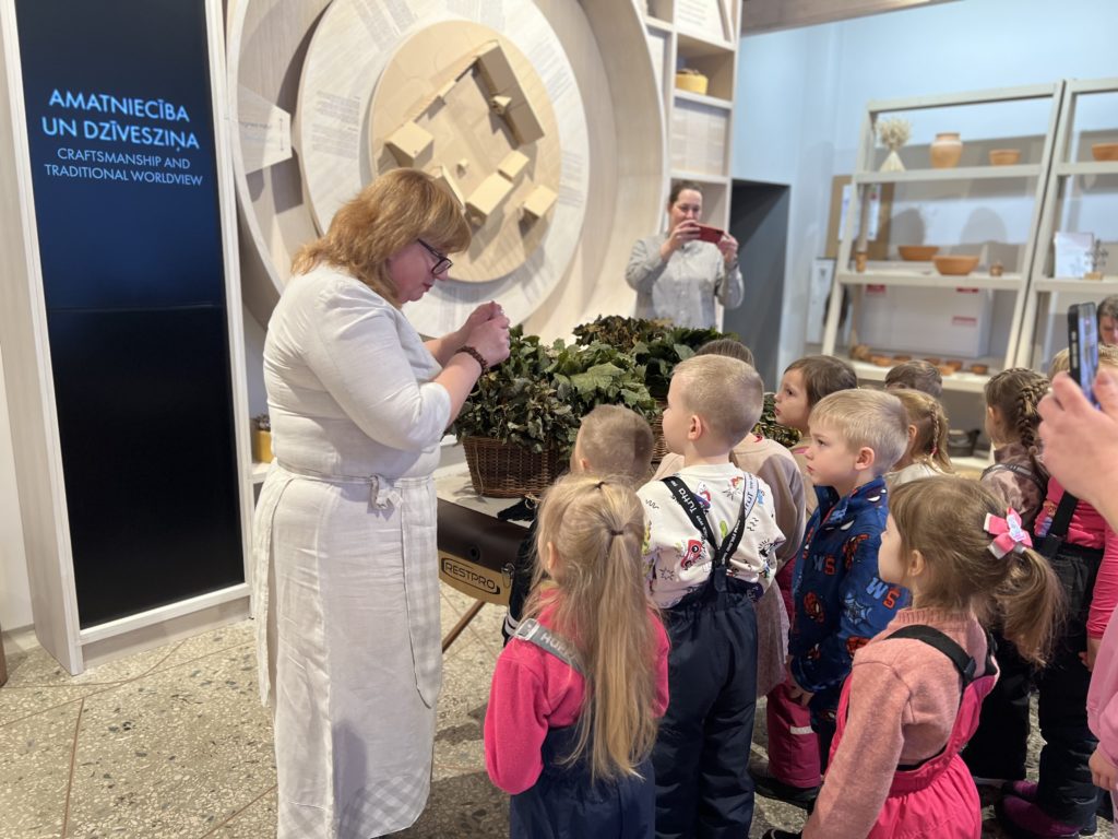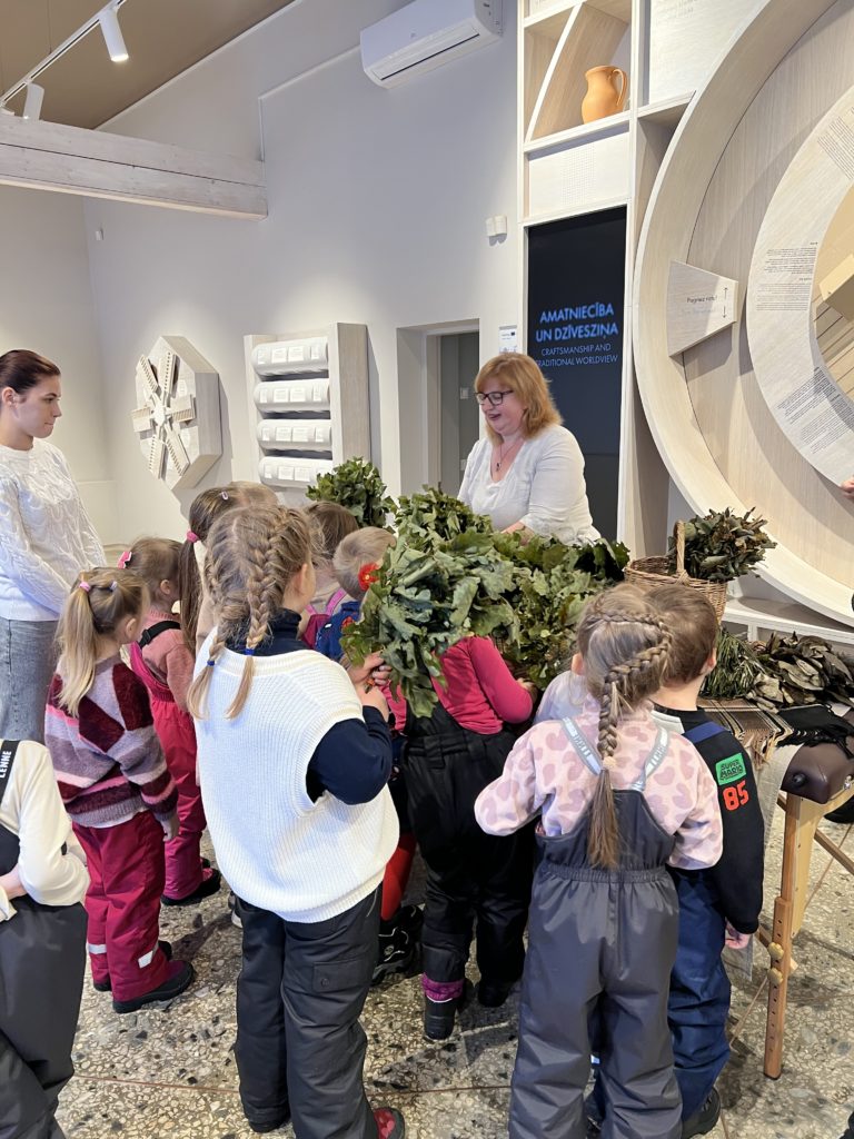 Jau no paša rīta Tradīciju mājā viesojās bērni un jaunieši, lai radoši darbotos kopā ar novadpētnieci Eviju Maļkeviču-Grundeli, pirtnieci Dzintru Abaroni, skalu grozu pīšanas meistaru Andri Kačkānu un kalēju Edgaru Vronski. Kopā ar Tradīciju mājas vadītāju Baibu Pankjāni bērni iepazina jauno izstādi, kā arī meistaru vadībā izzināja, kā senos laikos tapa diegi, kāda ir pirts nozīme, kā top skalu grozi un metāla rotas.