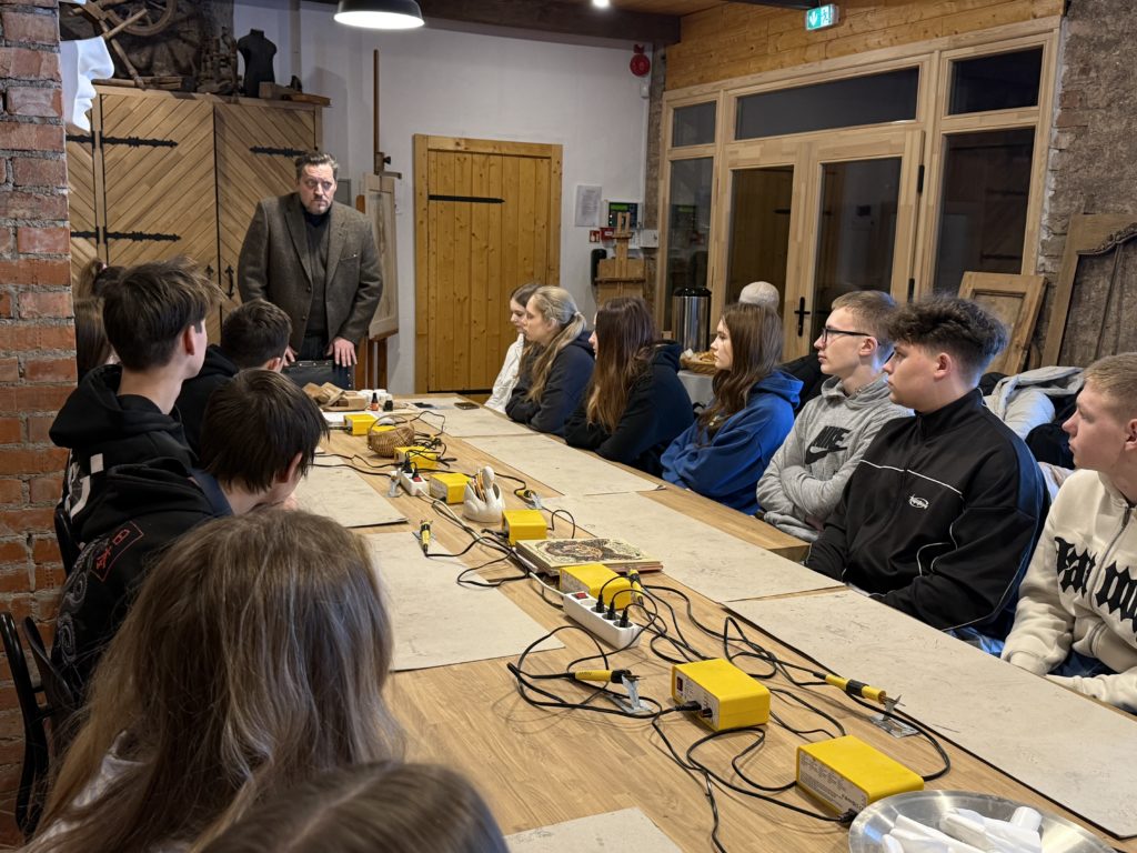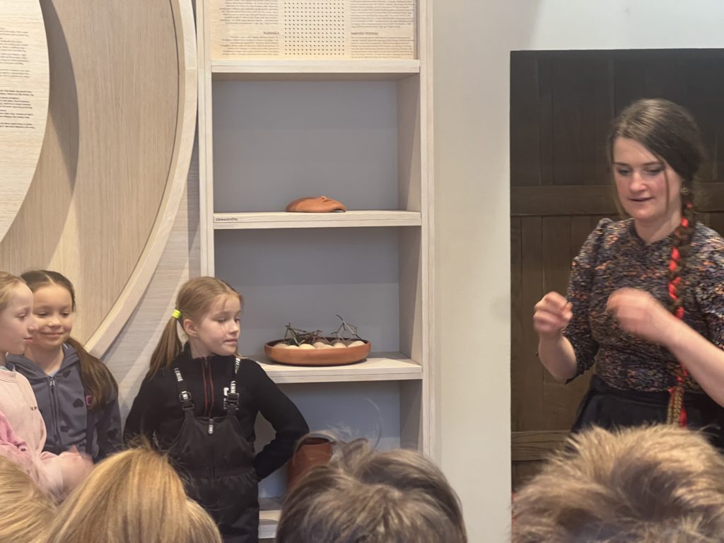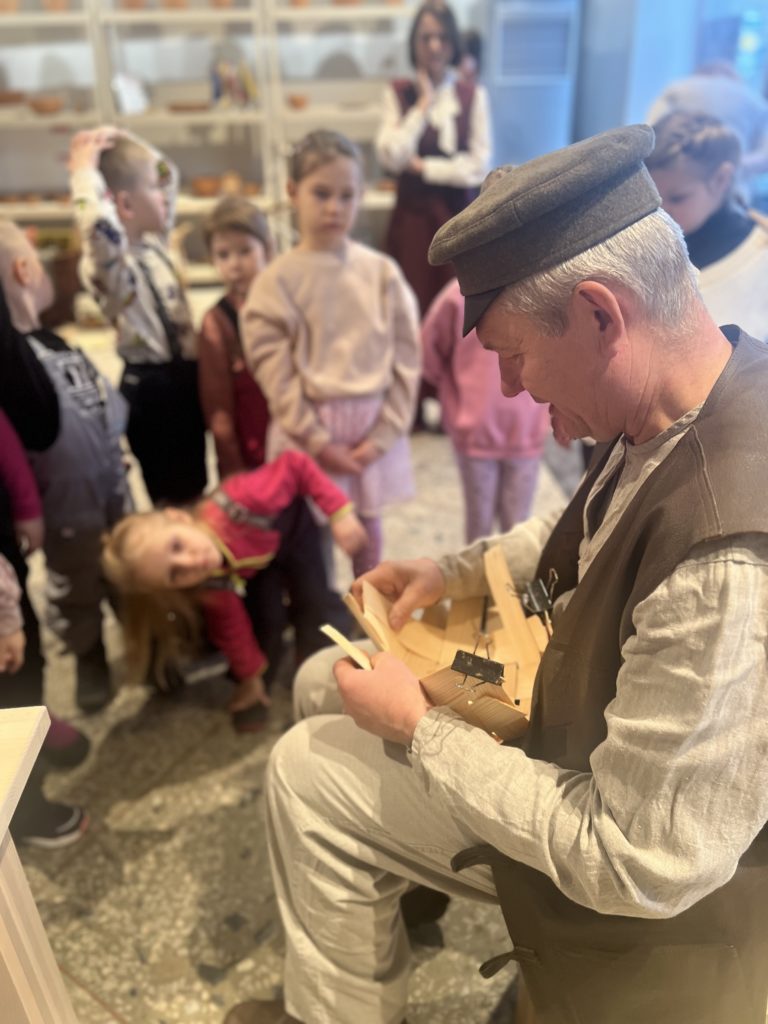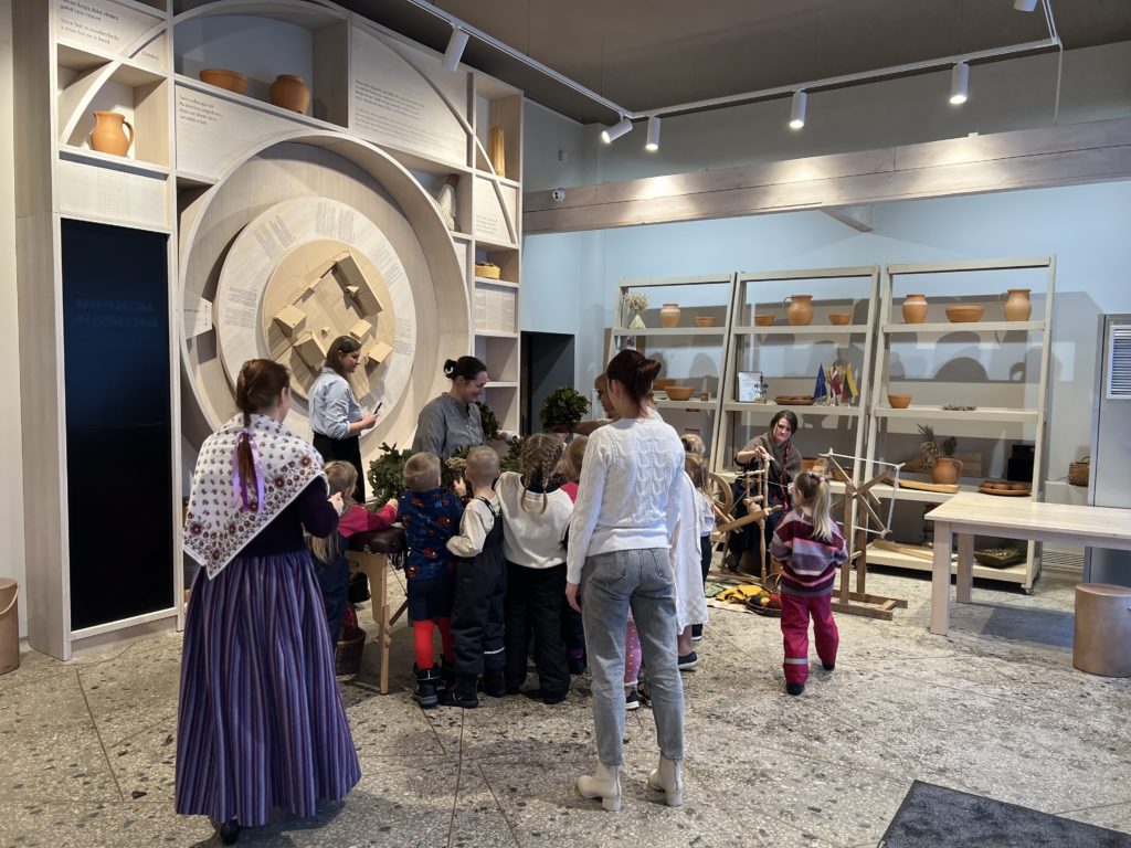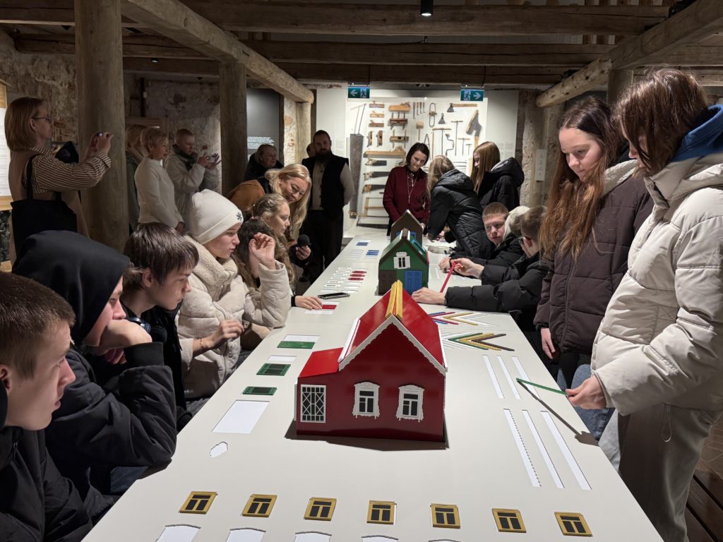 Jau no paša rīta Tradīciju mājā viesojās bērni un jaunieši, lai radoši darbotos kopā ar novadpētnieci Eviju Maļkeviču-Grundeli, pirtnieci Dzintru Abaroni, skalu grozu pīšanas meistaru Andri Kačkānu un kalēju Edgaru Vronski. Kopā ar Tradīciju mājas vadītāju Baibu Pankjāni bērni iepazina jauno izstādi, kā arī meistaru vadībā izzināja, kā senos laikos tapa diegi, kāda ir pirts nozīme, kā top skalu grozi un metāla rotas.