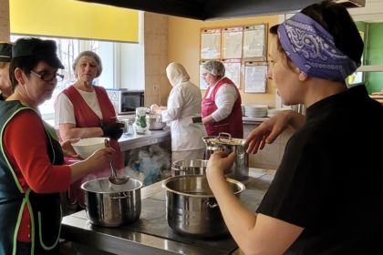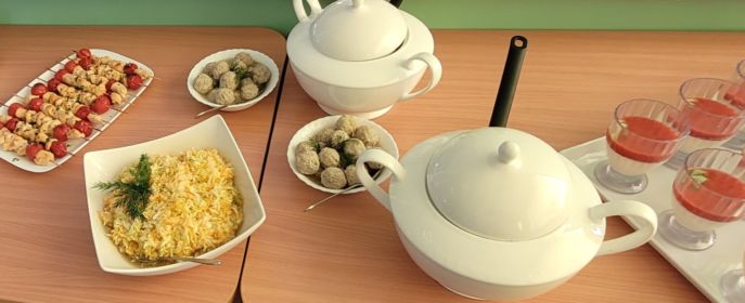 Pēc teorētiskās daļas sekoja praktiskais darbs. Pavāri komandās gatavoja dažādus ēdienus: frikadeļu zupu ar kausēto sieru, svaigu kāpostu salātus, pamatēdienu – kartupeļu biezeni ar vistas un ķirštomātu šašliku un mērci, launaga ēdienu – kartupeļu pankūkas ar krējuma mērci, kā arī desertu – pannakotu. Darbnīcas laikā valdīja radoša un draudzīga atmosfēra, kurā dalībnieki dalījās savās zināšanās, gatavošanas pieredzē un idejās par to, kā padarīt skolu ēdienkarti vēl pievilcīgāku skolēniem.