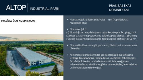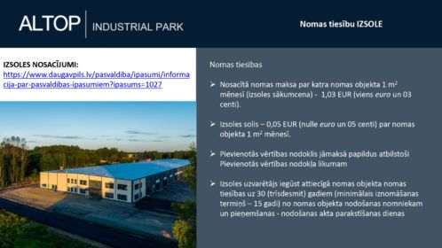 Daugavpils valstspilsētas pašvaldības sagatavotā prezentācija par ALTOP industriālā parka ražošanas telpām: