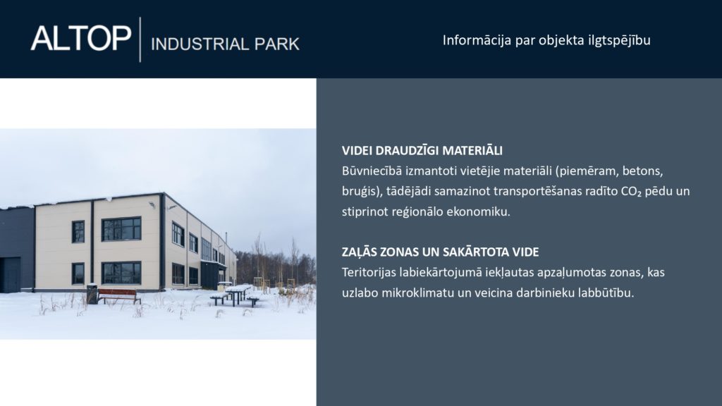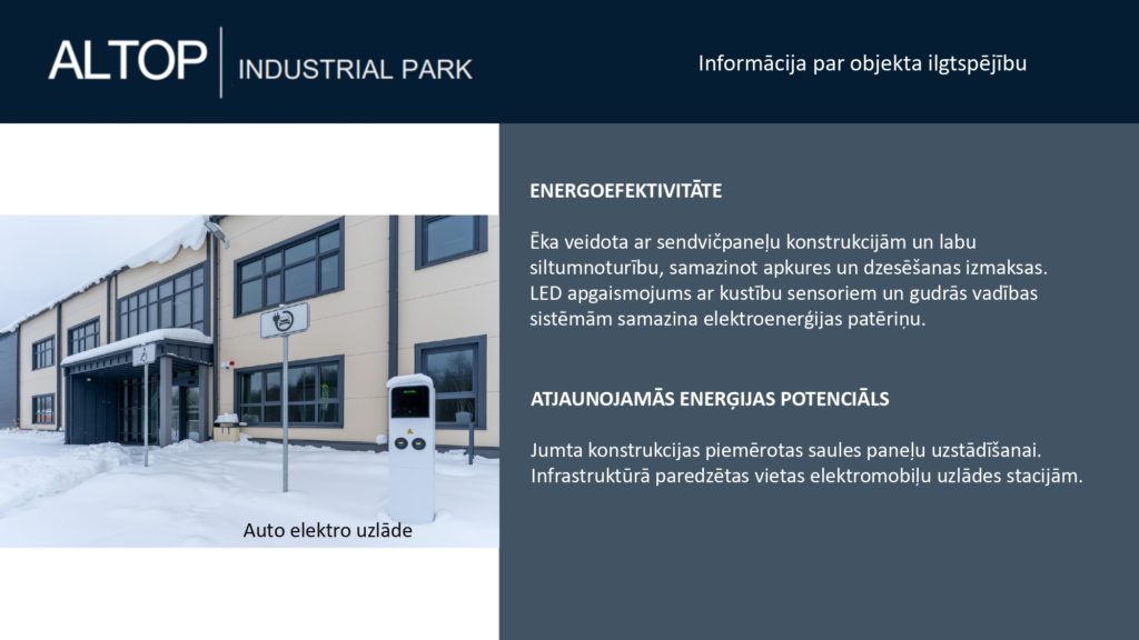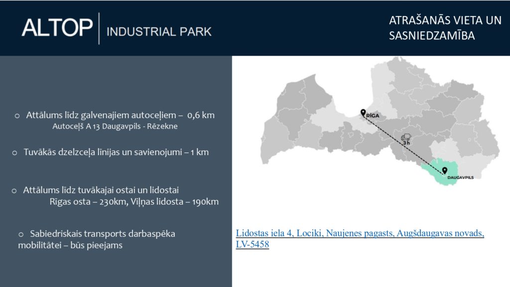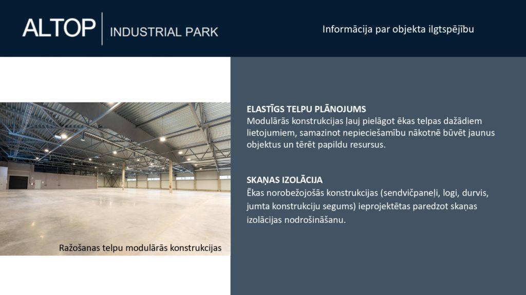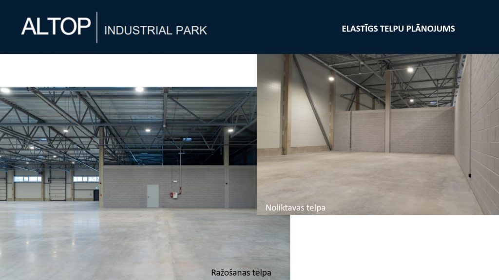 Daugavpils valstspilsētas pašvaldības sagatavotā prezentācija par ALTOP industriālā parka ražošanas telpām: