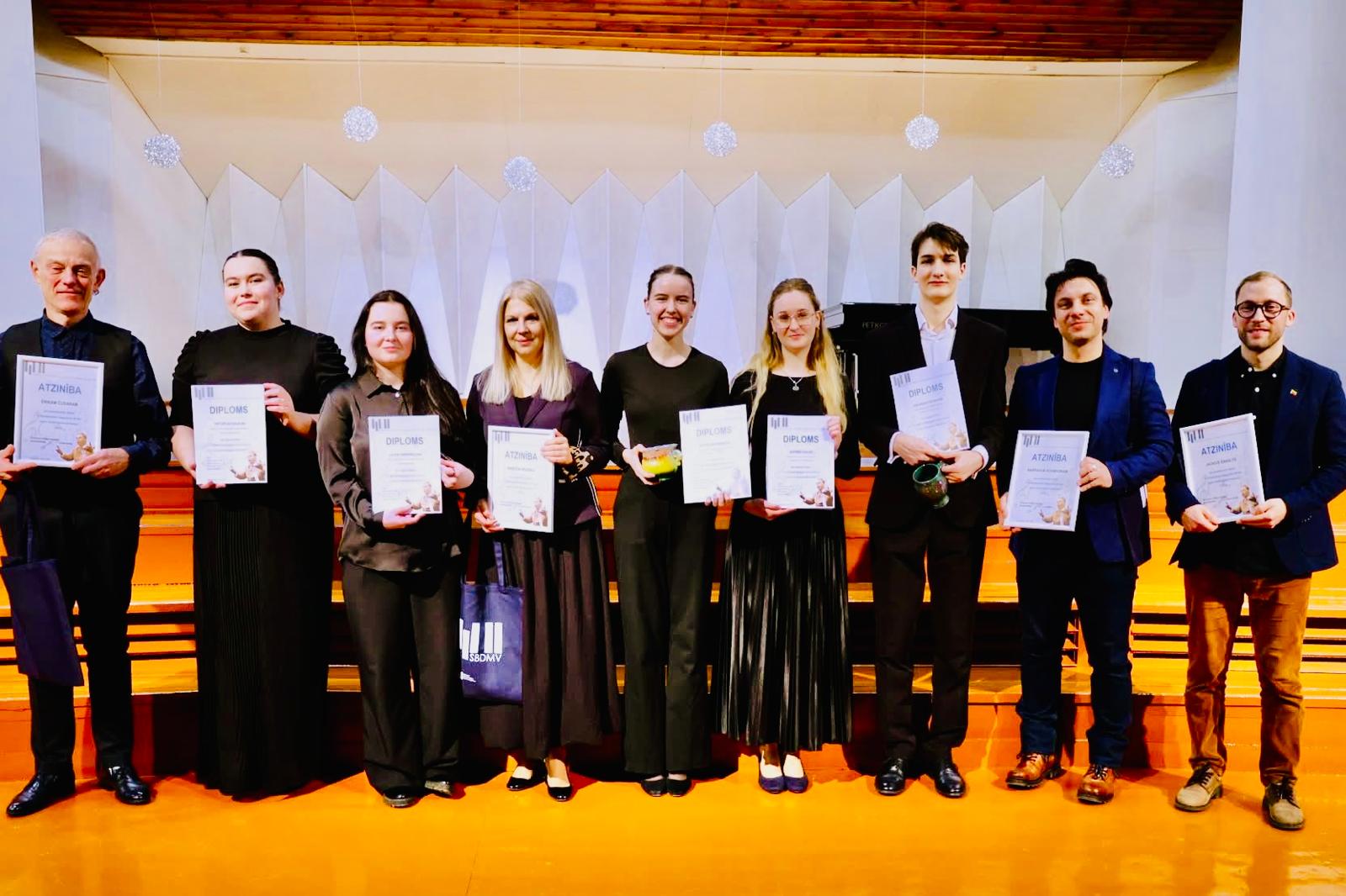 Foto: Žūrijas locekļi ar konkursa laureātiem.Maruta Veličko